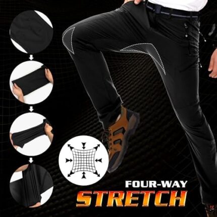 NOUKOW Men’s Outdoor Hiking Pants Quick Dry Lightweight Waterproof Work Pants for Men Stretch 6 Zip Pockets and Belt