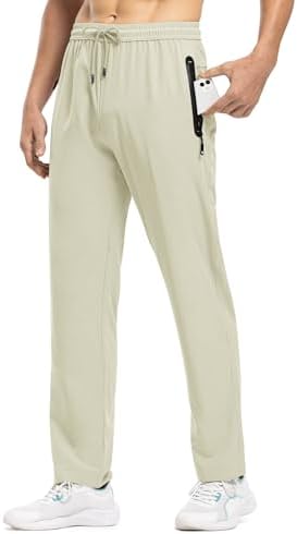 TBMPOY Men’s Lightweight Hiking Travel Pants Breathable Athletic Fishing Active Joggers Zipper Pockets