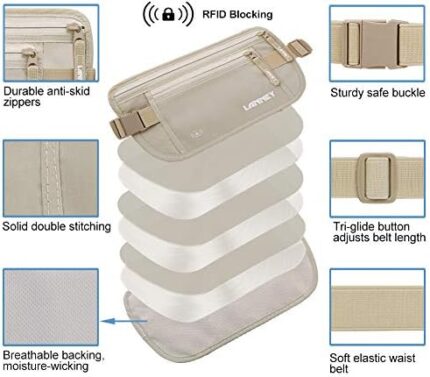 Travel Money Belt Hidden Waist Stash Wallet RFID Blocking Anti-Theft Passport Holder for Men Women, Cream