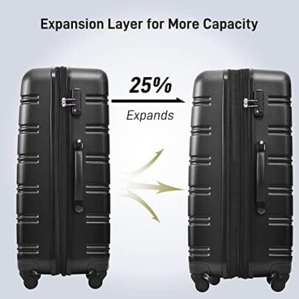 Merax Luggage Sets of 3 Piece Carry on Suitcase Airline Approved,Hard Case Expandable Spinner Wheels (Black)