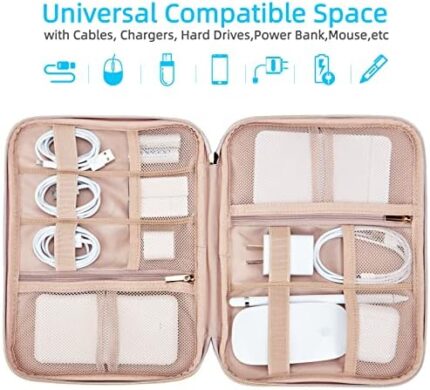 NISHEL Travel Cord Organizer Case,Tech Electronic Case, Travel Essentials for Charger, Cable, Phone, Hard Drive, USB, SD Card, Pink
