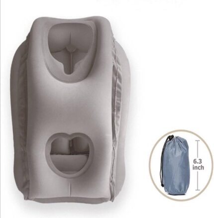 Inflatable Travel Air Pillow for Sleeping to Avoid Neck and Shoulder Pain, Comfortably Support Head and Lumbar, Used for Airplane, Car, Bus and Office (Grey)