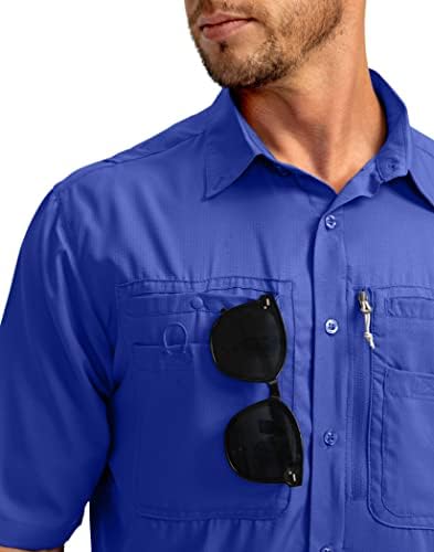 Men’s Fishing Shirts with Zipper Pockets UPF 50+ Lightweight Cool Short Sleeve Button Down Shirts for Men Casual Hiking