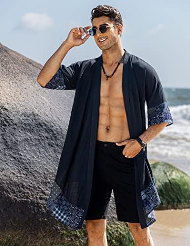 COOFANDY Men’s Ruffle Shawl Collar Cotton Cardigan Long Kimono Jackets Open Front Drape Cape Coat