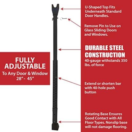 Dual Security Bar, 1-Set Adjustable-Length Portable Strong Door Bar for Hinged and Sliding Patio Doors and Windows, Home Safety and Travel Security, Extends 28 Inches to 45 Inches, Black