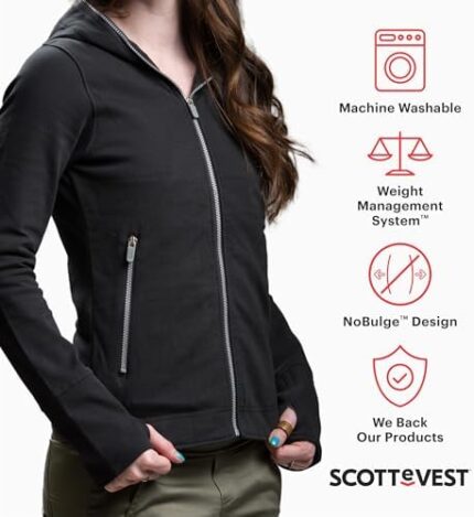 SCOTTeVEST Glow Hoodie for Women – 18 Hidden Pockets – Lightweight Zip Up Sweatshirt for Travel & More