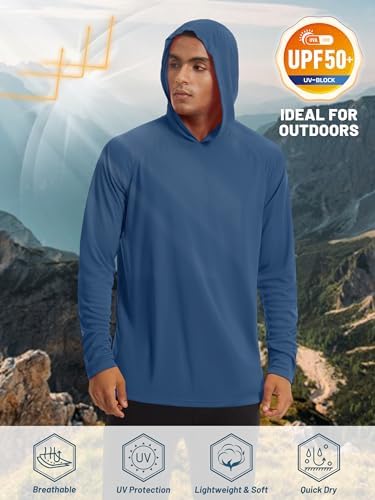 TACVASEN Men’s UPF 50+ Hoodie Shirts Sun Protection Rash Guard SPF UV Shirt Long Sleeve Fishing Hiking Lightweight Swim