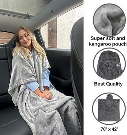 KOPI – Premium Travel Blanket Airplane Compact with Hoodie – 6in1 Kit Airplane. Foam Pillow, Sleep mask and Compact Bag. Travel Essential.