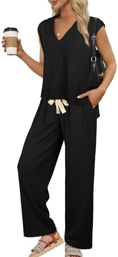 Price: (as of – Details) Product Description OFEEFAN Women Two Piece Outfits Hoodie Tops and Wide Leg Pants Matching Sets