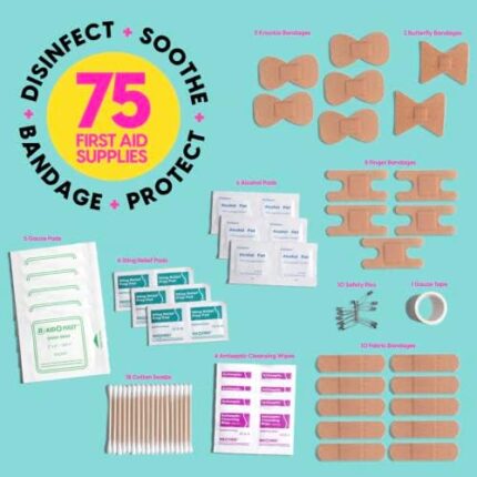 BLINGSTING First Aid Kit, 75 Essential First-aid Supplies, Wipes, Bandages, Gold Travel Case, Mini Emergency, Cute Car Accessories for Women, Home, Purse, Auto, Pink Interior Decor, Glovebox