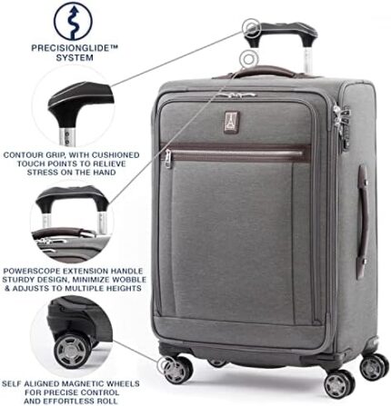 Travelpro Platinum Elite Softside Expandable Checked Luggage, 8 Wheel Spinner Suitcase, TSA Lock, Men and Women, Vintage Grey, Checked Medium 25-Inch