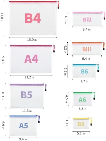 JARLINK 18 Pack 8 Sizes Mesh Pouch, 9 Colors, Waterproof Zipper File Bags Document Multipurpose Travel Bags for Office, School, Board Game, Puzzles, Cosmetics, Travel Accessories, and Home Organize