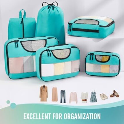 WOOMADA Compression Packing Cubes for Suitcases Organizer Bags Set 6 Set Compression Bags for Travel Expandable Travel Bags Organizer for Luggage(turquoise)