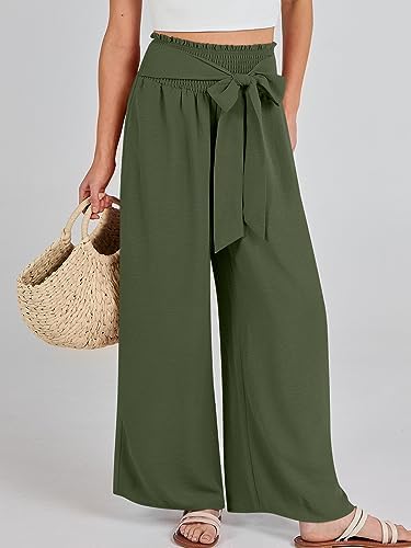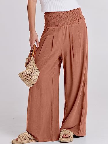 ANRABESS Women Linen Palazzo Pants Summer Boho Wide Leg High Waist Casual Lounge Pant 2024 Beach Travel Vacation Outfits