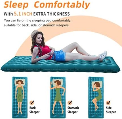Camping Sleeping Pad Extra Thick 5.1 Inch Inflatable Camping Mattress for Backpacking Hiking and Travel, Compact Portable Comfort Lightweight Sleeping Mat with Built in Foot Pump