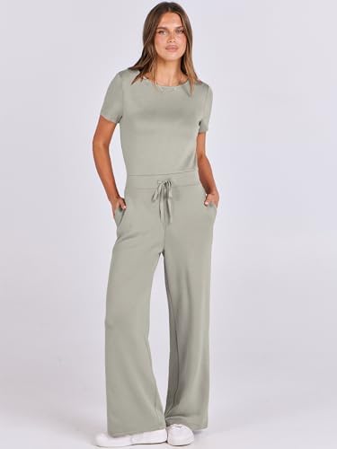 ANRABESS Jumpsuits for Women Casual Summer 2024 Short Sleeve Loose Wide leg Pants Dressy Romper Jumpers One Piece Outfits