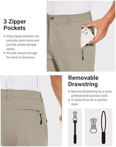 SPECIALMAGIC Golf Pants Men Stretch Slim fit Hiking Pants Lightweight Dress Casual Tapered Zipper Pockets