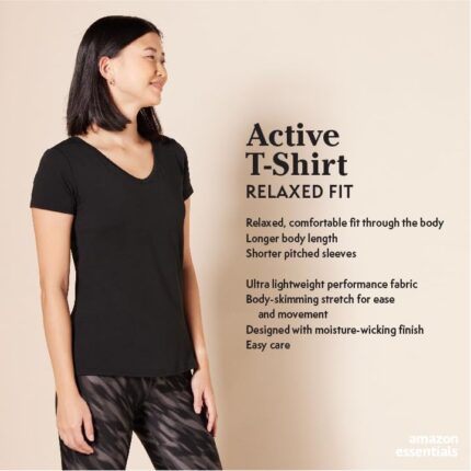 Amazon Essentials Women’s Tech Stretch Short-Sleeve V-Neck T-Shirt (Available in Plus Size), Multipacks