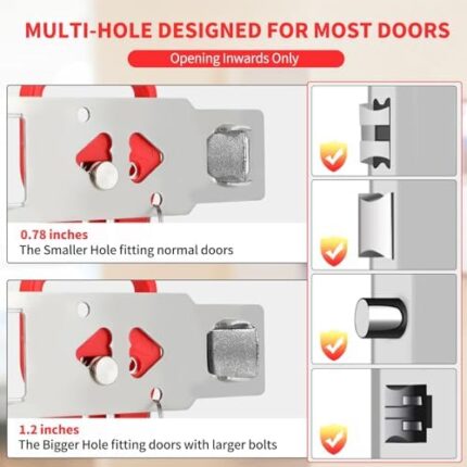 Portable Door Lock Home Security Door Locker Travel Lockdown Locks for Additional Safety and Privacy Prevent Unauthorized Entry for Traveling Hotel Home Bedrooms Apartment College Dorms(Red)