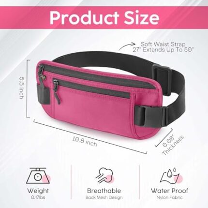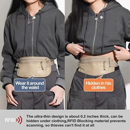 Money Belt for Travel – Security Fanny Pack for Phone, Money, Passport, & More with Anti Theft RFID Protection – Slim Under Clothes Hidden Wallet Holder Bag – Unisex Travel Waist Pouch for Women & Men