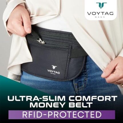 Travel Money Belt & Passport Holder – RFID Blocking Slim Travel Wallet & Fanny Pack for Men and Women – Essential Travel Pouch for Cash, Credit Cards, and Documents