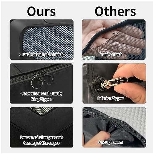 【Convenient Ring Double Zipper】: Compared to the small zipper head, the ring zipper prevents the zipper from slipping out of your hand when you zip it, and the ring circular zipper allows you to open the doggy bag quickly. In addition, durability is what these travel bags are designed for, so we also used thicker fabric and stronger breathable mesh to make it.
