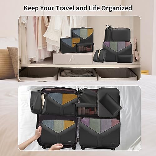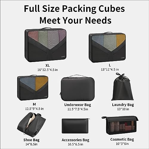 𝐘𝐨𝐫𝐞𝐥𝐨𝐥𝐨 8 Set Packing Cubes for Suitcases, Packing Cubes for Travel Essentials, Luggage Organizer Bags With Clean Clothes and Dirty Clothes Separate (Black)