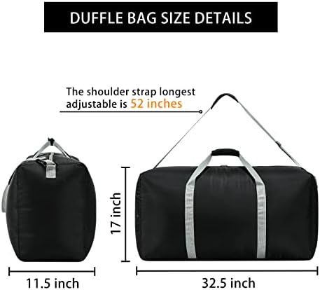 EASY TO CARRY LIGHTWEIGHT EXTRA LARGE DUFFEL BAG:The duffle bag has a long and comfortable padded carrying strap and handles for different options to carry. Can be folded to small size, easy to carry as a “JUST IN CASE” bag for your trip.
