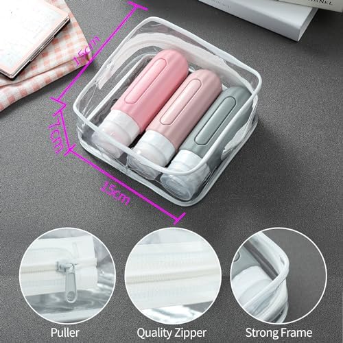 Useful Travel Accessories: This is a nice assortment of travel containers in a useful zip case. ( Come in 4 Travel Bottles+4 Travel Jars+2 Spray Bottles+2 Scoopers+1 Funnel+1 Clean Brush + 1 Page Label + 1 Clear Toiletry Bag ) Multiple ones allow you take along different beauty products and toiletries according to your requirement