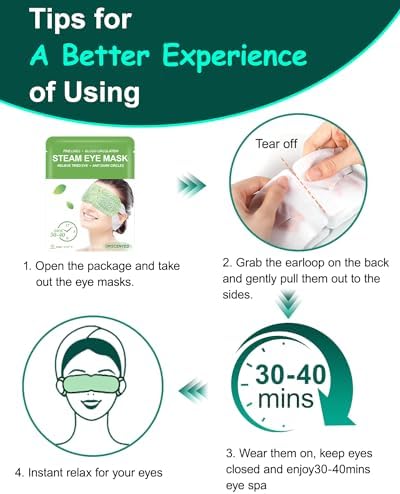 𝟏𝟎𝟒~𝟏𝟏𝟑℉ 𝐇𝐨𝐭 𝐂𝐨𝐦𝐩𝐫𝐞𝐬𝐬 𝐟𝐨𝐫 𝐄𝐲𝐞𝐬- Our warm eye mask adopts steam heating and temperature control technology with up to 104~113℉. Heated eye mask will release fine moist steam, hydrates the skin around eyes, let tired eye enjoy the steam, it kept working with comfortable warmth for your eyes.