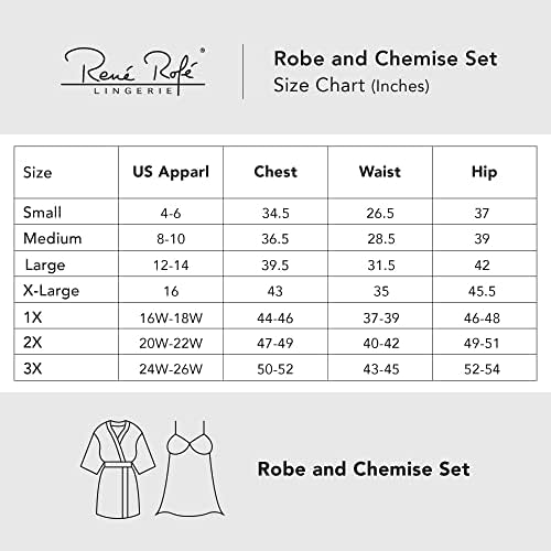 At René Rofé Sleepwear we understand that our customers top priorities are comfort and fit. We strive to provide the most flattering, soft, flirty and super cute designs making our pajamas and loungewear the best choice for you. Upgrade your wardrobe with our super soft, and cozy two piece robe and chemise sleepwear travel set. It will become essential loungewear that you will fall in love with! The stretchy, lightweight, durable, super soft and silky fabric are what make our sleepwear so popular. The perfect tie up robe set for spring, summer, fall and winter. Falling asleep never looked or felt so good in our super adorable and comfy pjs. The perfect sleepwear gift set for christmas, valentines day, bridal showers or for someone special looking to sleep in style.robe sets for women, robe and gown sets, robe gown sets for plus size women, maternity robes, pregnant women robes, robes for pregnant women, sexy satin robes for women, every day bath robes for women, womens bath robes, lounge robes for women, travel robe sets for women.