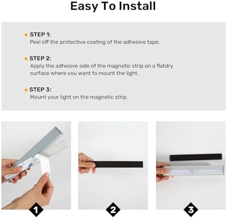 【Easy To Install】No tools, screws, or nuts are required to install these automatic light For RV step. Just peel off the tape and attach the magnetic strip to the location you want to install, the magnetic motion sensor light will automatically attach to the strip, allowing for easy battery removal and replacement. For best adhesion results, please mount the magnetic strip on a clean, dry, smooth flat surface.