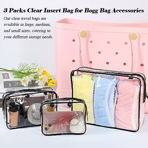 【Portable & Reusable】: Our clear toiletry bag is lightweight, easy to clean. The 3-pack of waterproof inserts is tailored to seamlessly fit into Bogg bags, providing convenient compartments to keep your essentials organized and maximizing available space.