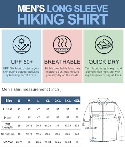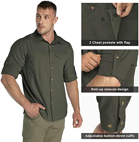33,000ft Men’s Long Sleeve Hiking Shirts Lightweight Quick Dry Sun Protection UV UPF 50 Fishing Shirt Outdoor Safari Travel