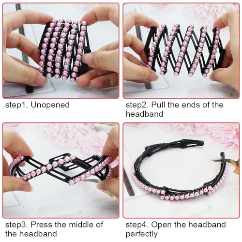 【Fashionable Retractable Headbands】Our headband with unique and eye-catching design which is stretchable and can be adjusted to bend according to your head circumference. Just hold it firmly in your hands and gently press it inward to move the hinge to fold it into a compact size. When you are ready to use, pull them to expand to the maximum condition and just wear.
