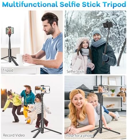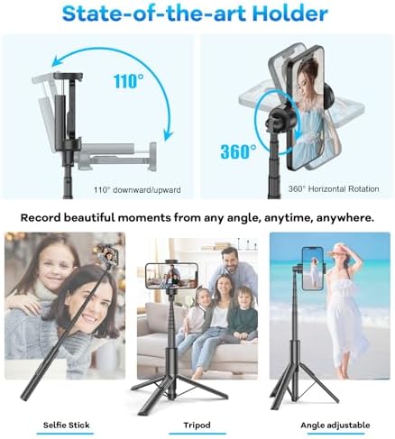 【Stretchable and Comfortable】This iPhone selfie stick is designed with an 8-section aluminum alloy material telescopic pole, the longest can be stretched up to 60 inches so that you can freely adjust the height (length) to capture a wider view. Suitable for selfies, videos, live streaming, group photos and more.