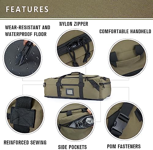 𝗔 𝗩𝗔𝗥𝗜𝗘𝗧𝗬 𝗢𝗙 𝗪𝗔𝗬𝗦 𝗧𝗢 𝗔𝗣𝗣𝗟𝗬: Tactical duffle bag design invisible shoulder straps,double-sided increase in hand-carrying straps.military travel bag can be Large duffel backpack, Tote bag,but also two people can work together to transport. The equipment bag has a removable buckle on the shoulder straps, so you can secure the webbing when you carry it on both shoulders, making large bag safer to use.A very useful big weekender bag