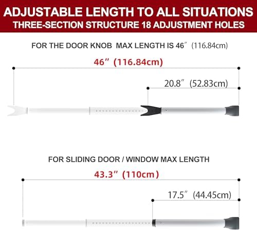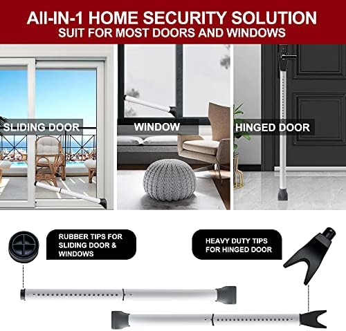 [2-in-1 Door & Sliding Door Security Bar] Use our adjustable door security bar to deter burglars from breaking into your house, apartment, or even hotel room. The length of the door barricade security bar can be adjusted from 21 to 46inch, and the full product weighs only 2.2 pounds, making it easy to carry during travel or store at home.