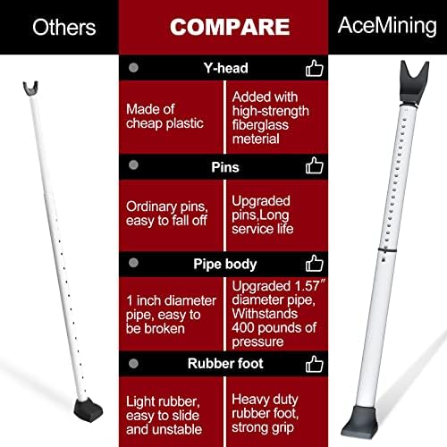 [Versatile and Enhanced Design] The lock bar is equipped with enhanced high-strength alloy connections to extend the service life. It also features thickened 1.57inch pipe diameter design, high-quality material upgrades and plastic components made of high-strength fiberglass material making it stable and sturdy. Since the security bar on an AceMining door stopper can endure 400 pounds of force, an invader would have to be as strong as a heavyweight boxer to open the door.