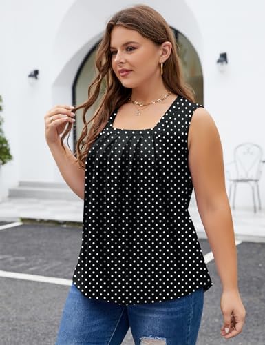 AKEWEI Summer Tank Top for Women Square Neck Sleeveless Tops Flowy Pleated Tunic Loose Fit S-3XL
