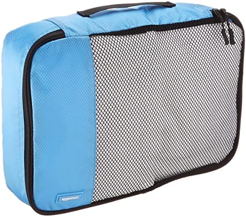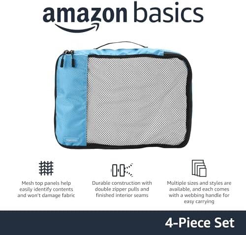 Amazon Basics 4 Piece Packing Travel Organizer Cubes Set – Medium, Sky Blue