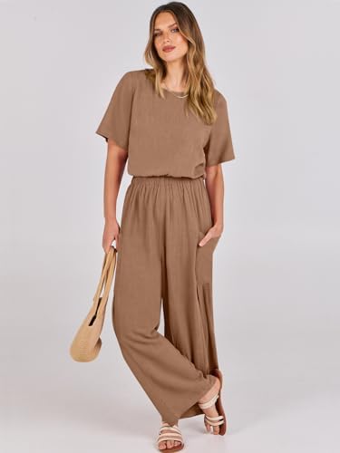 ANRABESS Women Linen Jumpsuits 2024 Summer Casual Loose Short Sleeve Wide Leg One Piece Jumper Romper Outfits Trendy Clothes