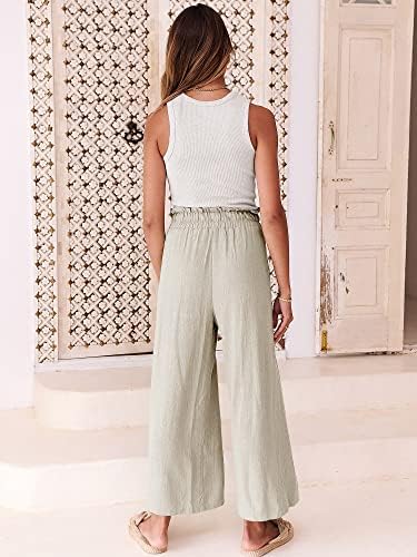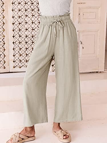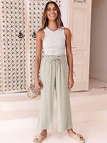 ANRABESS Women Linen Pants Casual Loose High Waist Boho Wide Leg Cropped Palazzo Beach Pants Summer Outfits 2024 Trendy