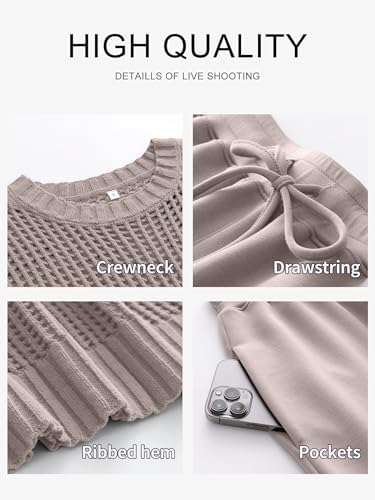 Features – Hollow-carved Design, Crew Neck, Sheer Pointelle Stitch, Short Sleeve, Drawstring