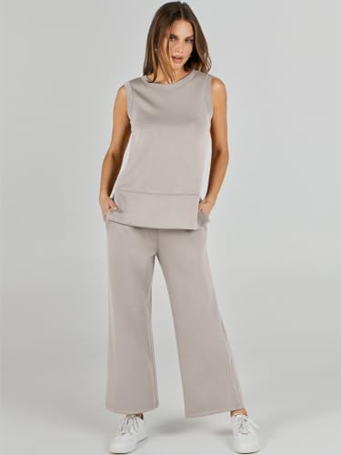 Home Travel Clothing ANRABESS Women’s 2 Piece Sets Summer Outfits Sleeveless Wide Leg Tracksuits Casual Sweat Sets Lounge Sweatsuits