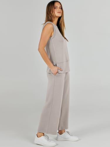 ANRABESS Women’s 2 Piece Sets Summer Outfits Sleeveless Wide Leg Tracksuits Casual Sweat Sets Lounge Sweatsuits
