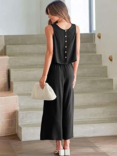 Features – 2 Piece Outfits / Sleeveless / Round Neck Crop Top /Wide Leg Cropped Pants
