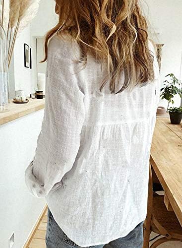 Womens Button Down Shirts Roll-Up Sleeve V Neck Casual Tunics Classic Plain Casual Business Blouse