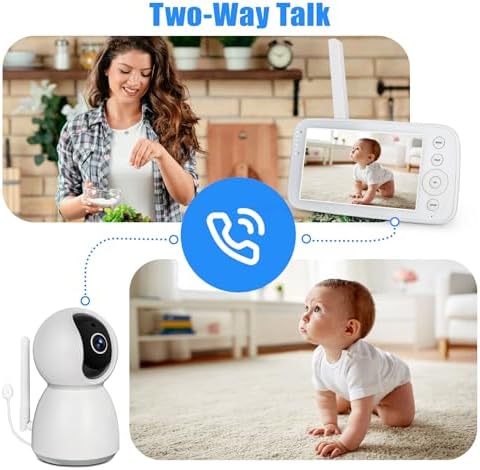 👀【5″ Large Screen and Zoom】This Caxilysh baby monitor comes with a 5-inch and 720×1280 (HD) handheld and 1920×1080 baby monitor camera, which allows you to clearly see your baby’s every move, and the baby monitor also has a 2x zoom. With an aspect ratio of 16:9 (HD720), this baby camera gives you a clearer and more comfortable view of details that can be easily missed.