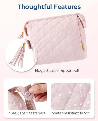 【Multi-functional Pouch】- This multi-purpose makeup case is an essential travel companion, a handy daily purse organizer, a stylish small makeup pouch, a convenient tech accessories bag, a toiletry bag for traveling women, and a practical travel accessories bag. It also makes an excellent gift choice for occasions such as Christmas, birthdays, or Valentine’s Day. Quilted makeup bags elegant design and functionality make it the perfect gift for any woman, whether she’s your friend, family member, or BFF.